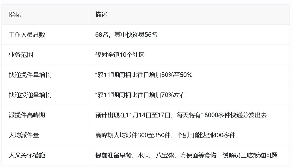 “双11”不仅是消费者的购物狂欢节,也是物流行业的“大考”。在巨大的业务量面前,快递员们付出了辛勤的努力,同时也获得了相应的回报。物流企业通过提前部署和人文关怀,确保了高峰期的平稳度过,为消费者提供了高效、优质的物流服务。