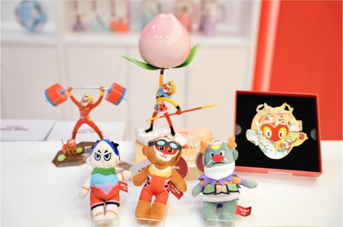 店铺内的商品设计追求极致,将传统与现代元素巧妙融合。在选材上精益求精,确保材质经得起时间的考验;在工艺上匠心雕琢,力求每一处细节都彰显“冠军”品质。此外,店内还集中上架了以齐天大圣孙悟空为主要形象的TEAM CHINA“天宫助威团”主题系列产品,这些作品将中国古典神话与现代体育精神完美结合,是对国家队勇攀高峰、不断超越自我的精神风貌的生动诠释。