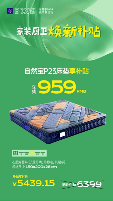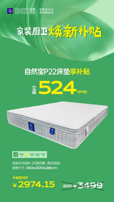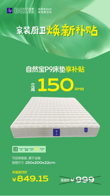 即日起至2024年12月31日,消费者可前往东莞市各远梦门店,体验多款热销床垫产品,享受政府补贴带来的实惠!无论是追求健康睡眠的新婚夫妇,还是改善家居环境的家庭,都可以借此机会以优惠价格选购心仪床垫。