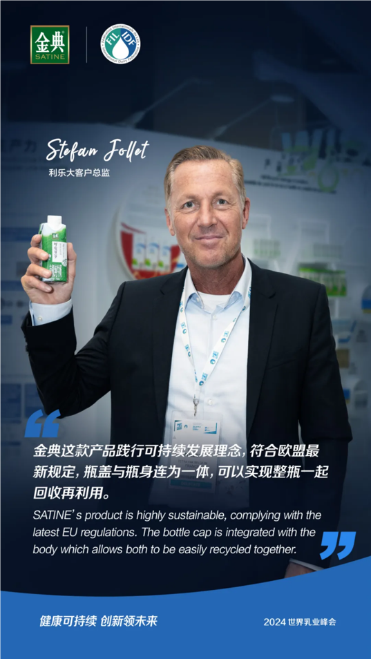 另一方面,伊利牛奶在践行低碳环保之路上,也给人留下极为深刻的印象。以金典呼伦贝尔有机植物基一体盖为例,按照利乐方面的数据,这款伊利牛奶不仅能提升消费者的使用体验,提供更好的便利性,而且相较于普通梦幻盖减少了7%的塑料使用量,相较于同类型常规包装的碳排放降低了33%。同时,这款伊利牛奶所采用的植物基瓶盖可再生、可通过现有的回收系统再次利用,日积月累,能够助力实现更高的环保价值。据利乐大客户总监Stefan Follet介绍,“金典这款一体盖产品践行可持续发展理念,符合欧盟最新规定,瓶盖与瓶身连为一体,可以实现整瓶一起回收再利用。”