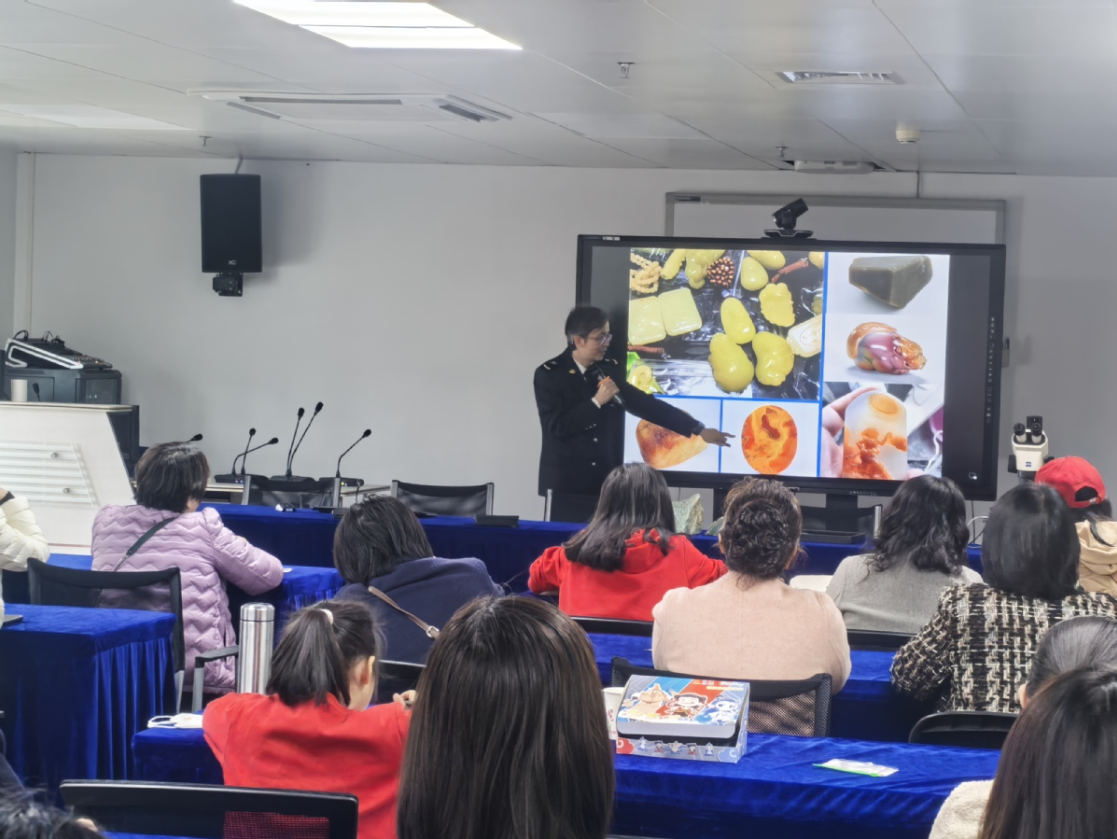 在国际消费者权益保护日之际,黄埔海关技术中心以硬核科技手段掀起珠宝打假风暴。3月15日,该关珠宝玉石鉴定实训教学点向公众开放,30余位市民携翡翠手镯、和田玉器等私藏品直击实验室核心检测区,六件经注胶染色处理的仿制品在精密仪器下现出原形。