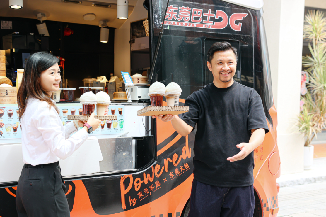 活动当日,首班“东莞大包巴士”在东莞记忆首开区正式启程。车身以红色主题彩绘装点,“东莞大包文旅专线巴士”字样醒目亮眼,车内不仅售卖经典“东莞大包”,还搭配咖啡、柠檬茶、巧克力牛奶及烤肠等多元美食,成为流动的城市味道载体。未来,这辆巴士将穿梭于城市各角落,让市民在街头巷尾便能“偶遇”珍贵的“东莞记忆”。