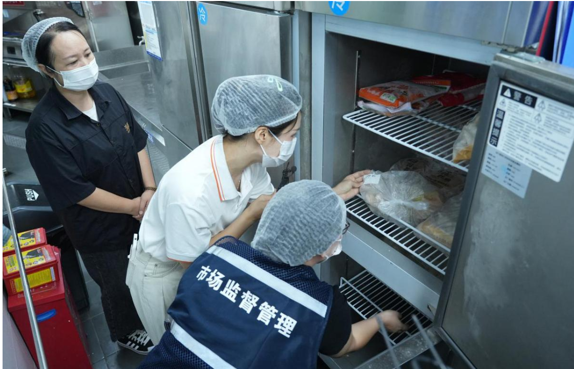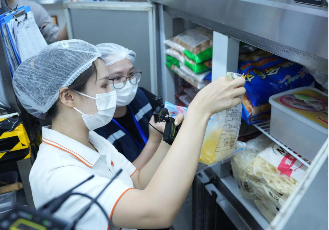本次行动阵容空前,除常规直播执法小分队外,市市场监管局还统筹调度相关科室及镇街分局十余名执法人员,组成多路检查队伍,同步对重点商圈餐饮单位实施突击式、全覆盖式排查。行动以“跟着全运游广东,市场监管带你进莞放心吃”为主题,凸显服务赛事、保障民生的双重目标。食品餐饮安全监管科科长丁曙昌在直播中介绍,为确保全运会期间不发生任何食品安全事故,尤其严防食源性兴奋剂事件,东莞已构建起“三个无盲区监管、三级联动机制、三点一线监管、三专管理模式、三级指挥落实”的全链条保障体系,从制度设计到执行落地层层设防,力求万无一失。