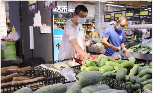 “群众需持24小时核酸检测阴性证明,健康码为绿码,体温正常才可进场。超市内也安排了工作人员督促群众保持距离,购买商品后及时结账不逗留。”该超市店长董天辉介绍,目前店内粮油米面等储备量可供应3至5天,生鲜物资每天新鲜配送,开放时间为早上7:00至晚上8:00。