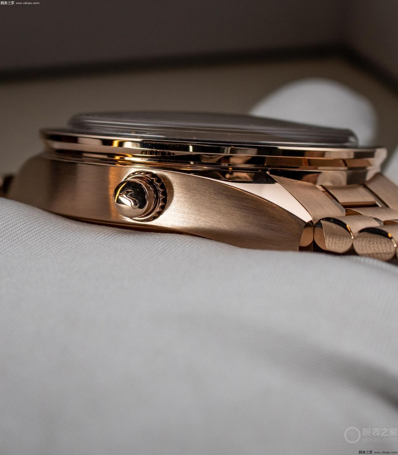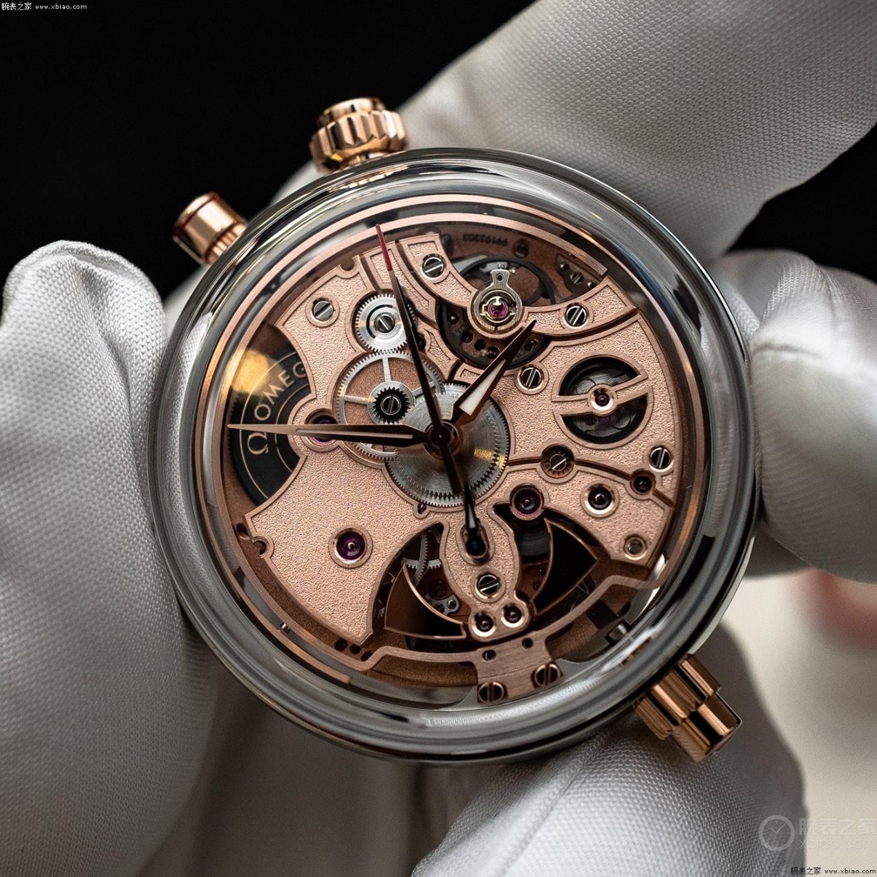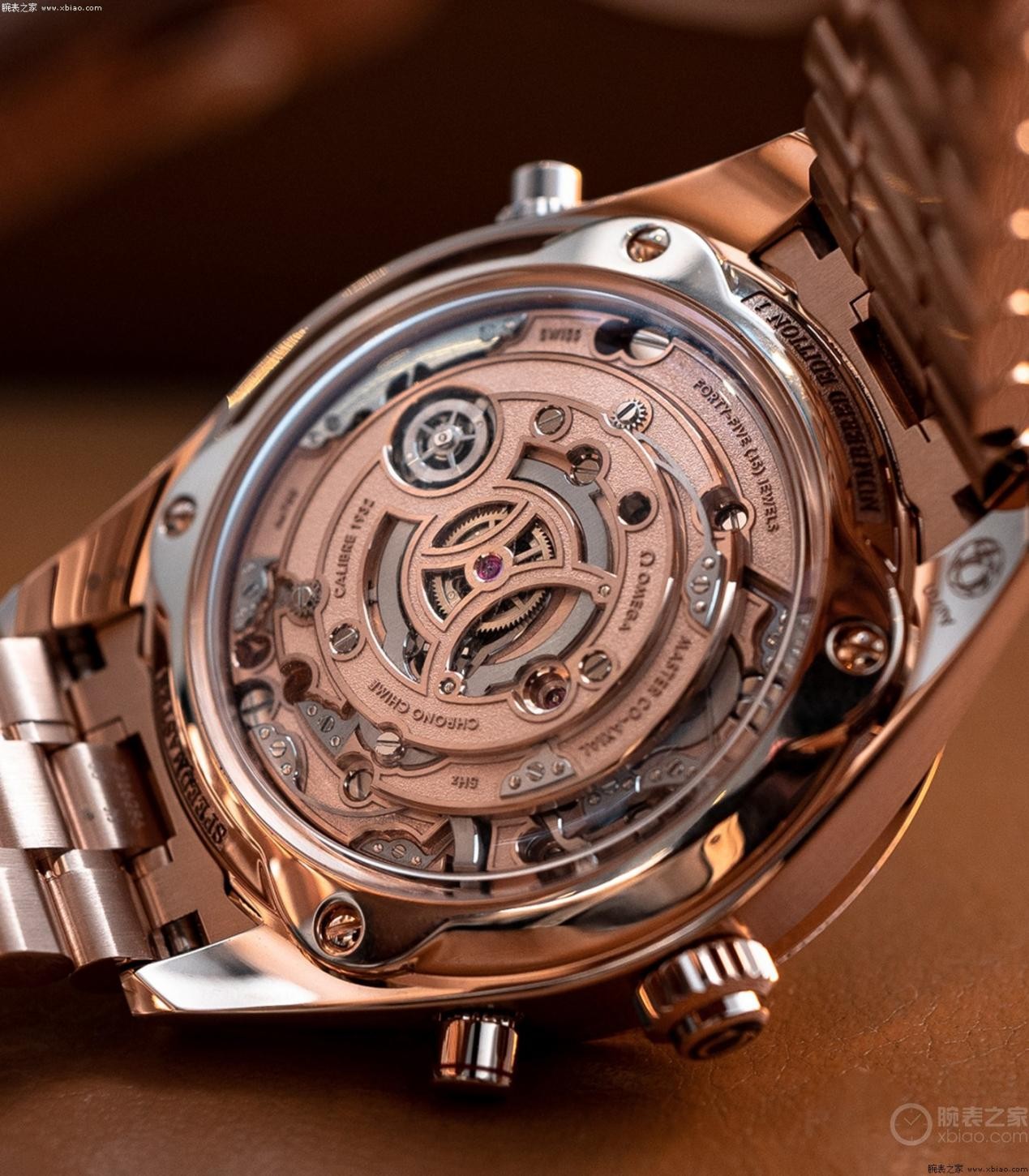 整个机芯的夹板、包括三问报时音簧,都是用欧米茄18K Sedna金制作(即欧米茄独家配比18K玫瑰金),机芯装饰配的上这枚大复杂表。并且在奥林匹克1932追针报时、超霸追针报时这两款上,都用了珐琅盘、玑镂雕刻,手表从内到外,细节到位。