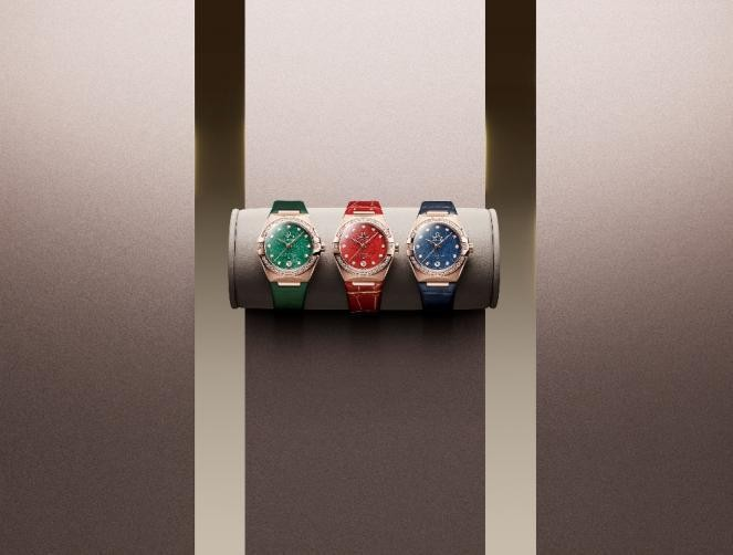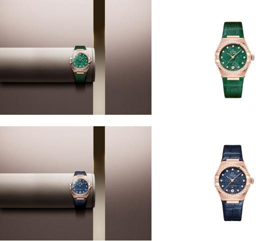 欧米茄今年共推出十二款砂金石腕表,有精钢 -Sedna 18K 金款,或 Sedna 18K 金款可选择,搭配绿色、红色或蓝色砂金石表盘。表圈铺镶钻石或镌刻罗马数字。指针、钻石刻度底托、品牌标识和星徽标志均由抛光 Sedna 18K 金制成。凝眸璀璨腕间,品牌对于精准卓越的隽永追求得以生动展现。