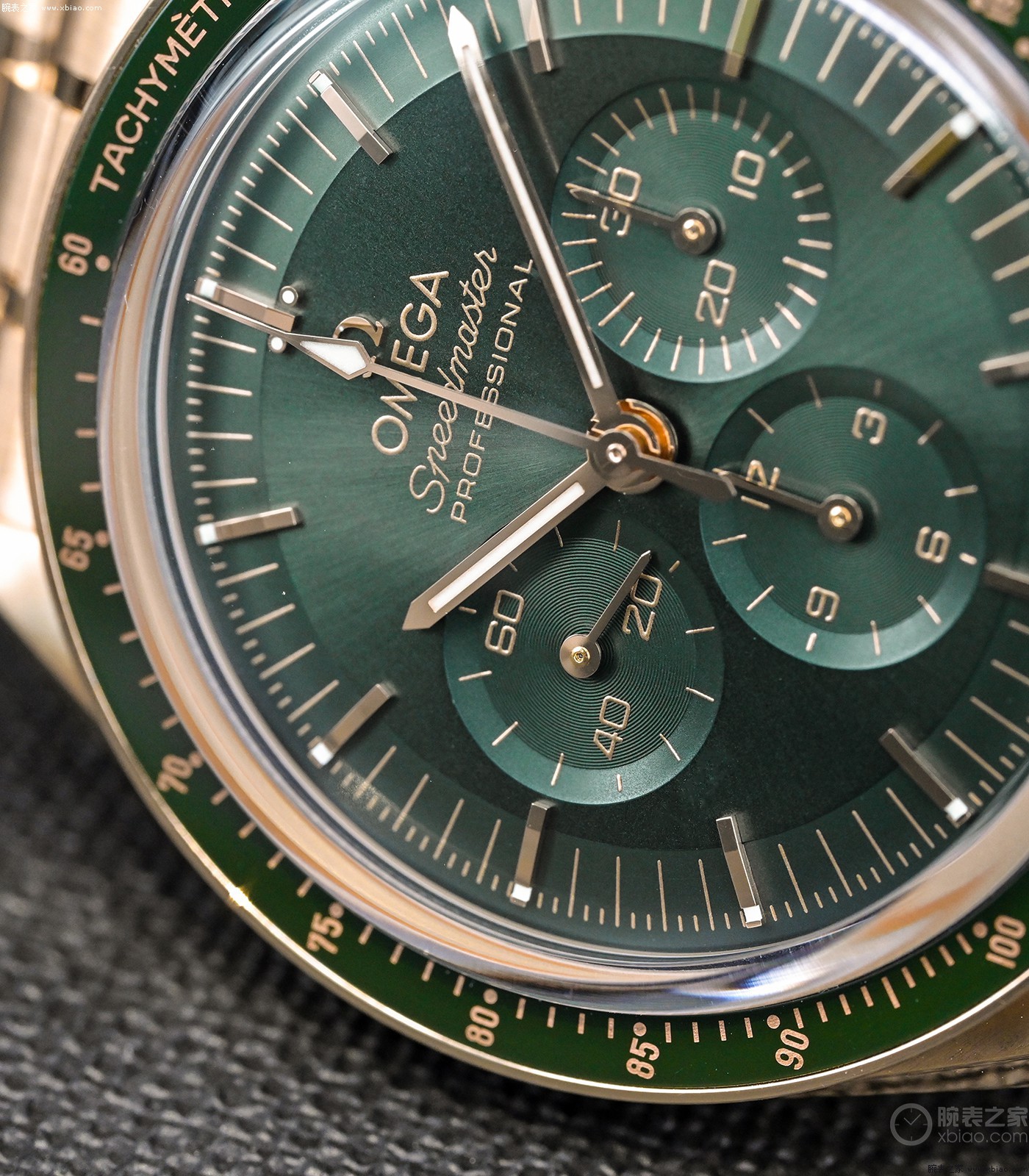 欧米茄超霸3861金壳绿盘,盘面细节。