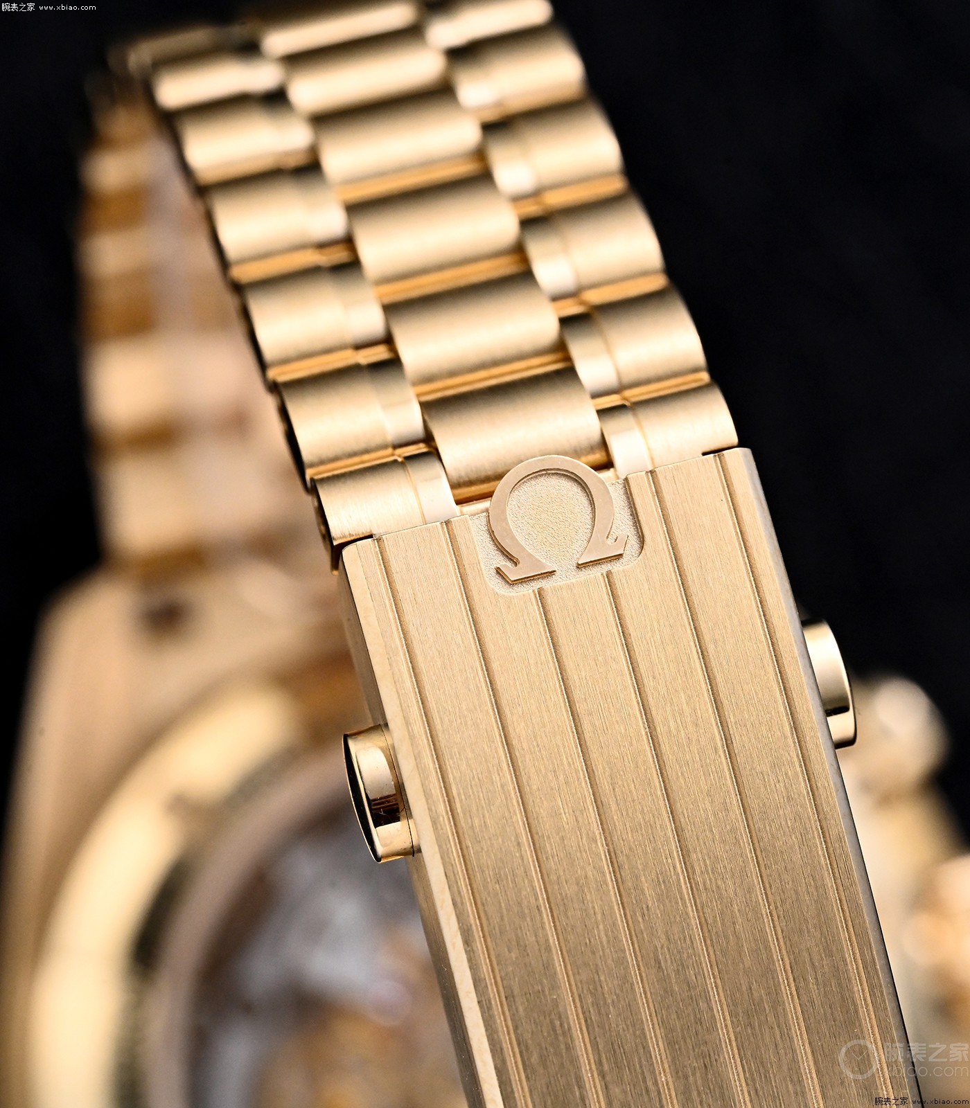 欧米茄超霸3861金壳绿盘,使用的金链和3861手动计时机芯。