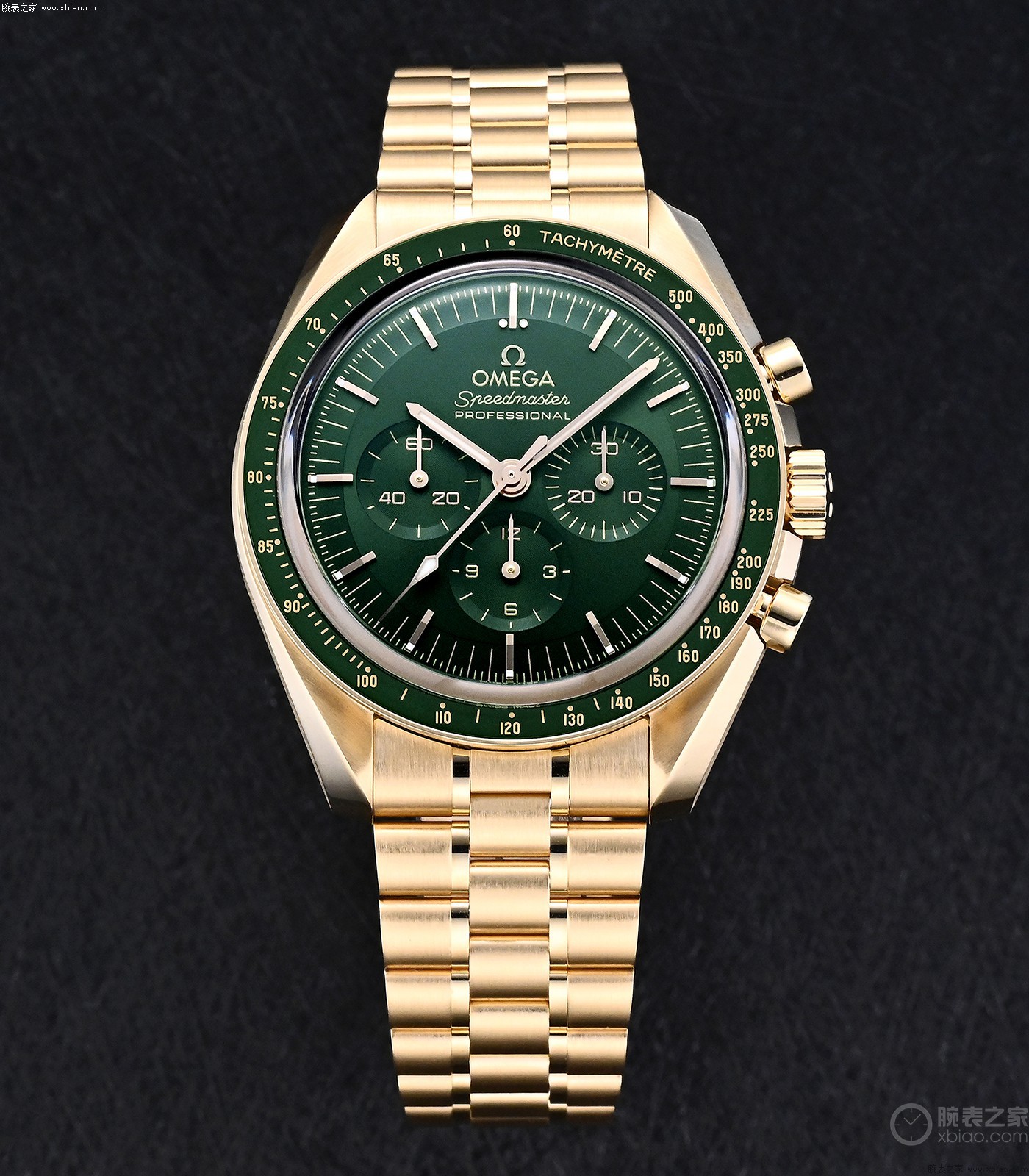 在过去的10年中,各位可以看到,通过不断的技术升级,重量级新款问世,欧米茄在一步一步提升、巩固在名表世界中的王者地位。这只金壳绿盘超霸3861,就是又一只给欧米茄带来“实质性提升”的新表。民间得名“绿金霸”。
