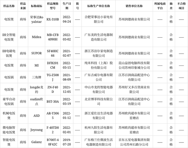 苏州市抽查10批次电饭锅产品 合格率为100%