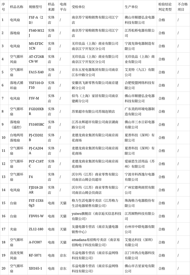 青岛市2023年电风扇产品质量市监督抽查结果公布