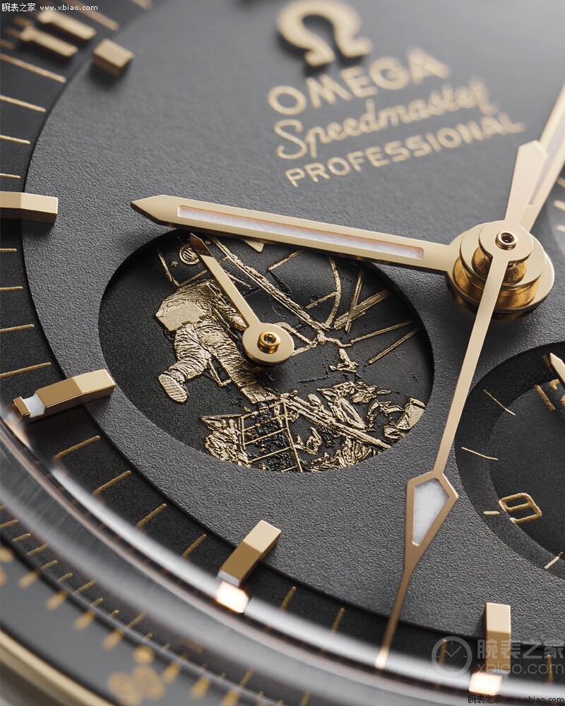 50年后,作为NASA所有载人航天任务的唯一指定腕表,欧米茄推出超霸系列“阿波罗11号”50周年纪念限量版腕表。9点位的Moonshine 18K金小表盘经过黑化处理,采用激光技术雕刻出巴兹·奥尔德林即将踏上月球表面的图案,以庆祝人类在太空探索中迈出的这一大步。