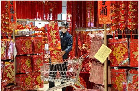 进入星河城商圈走进里面的嘉荣超市,新年氛围感更是满满——只见超市货品都已换上了“新年装”,不仅是年菜食品、年菜礼盒、零食礼盒有了专柜,春联、灯笼、兔年吉祥玩偶也有了专属区域。