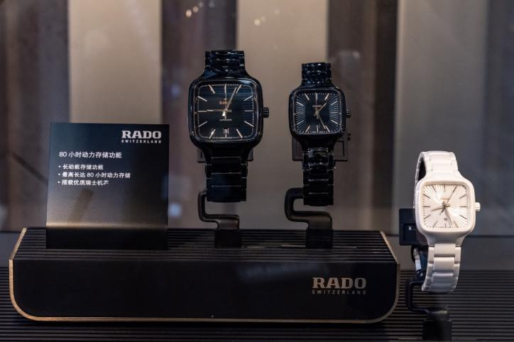 此次Rado瑞士雷达表在消博会中呈现了品牌标志性的True Square真我系列,表达自在、个性、真我尽兴的主张。它以方中带圆的独特廓形设计脱颖而出,以镂空机芯的设计展现机械之美,更以一体成型高科技陶瓷的至臻技术带来温润亲肤又不易磨损的完美佩戴体验。