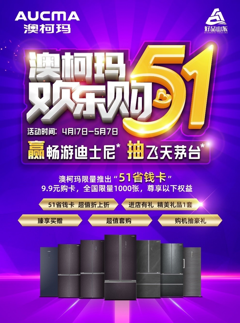 51省钱卡:9.9元购卡即可升级100元抵现卡,购澳柯玛立式冷柜、高端冰箱等指定型号,享立减100元,超值折上折;