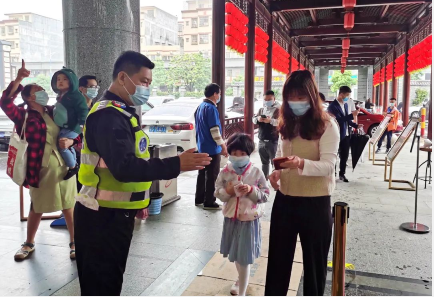 趁墟超市经理李先生告诉记者,消费者进入超市前需要测温扫码,现场有专职工作人员提示顾客佩戴口罩和发放口罩,每日进行2次全场大消杀以及重点接触部位每小时消毒,收银处则通过加强标识落实“一米线”限距要求。与此同时,商场实施员工健康情况台账化动态管理,全面营造安心放心的消费氛围。