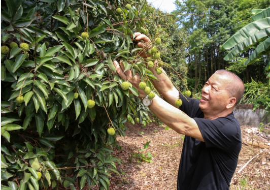 果农潘元辉:”我这个果园有20多年,每年都有小厂老板来‘包树’,几棵到十几棵不等,一两百公斤左右,请亲戚朋友、生意客户吃的。如果想‘包树’,一般6月10日左右就可以过来。价钱现在还说不定,等到荔枝全面上市,根据市场的价格再定价。”