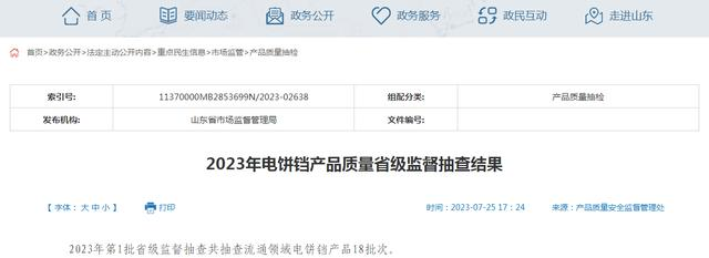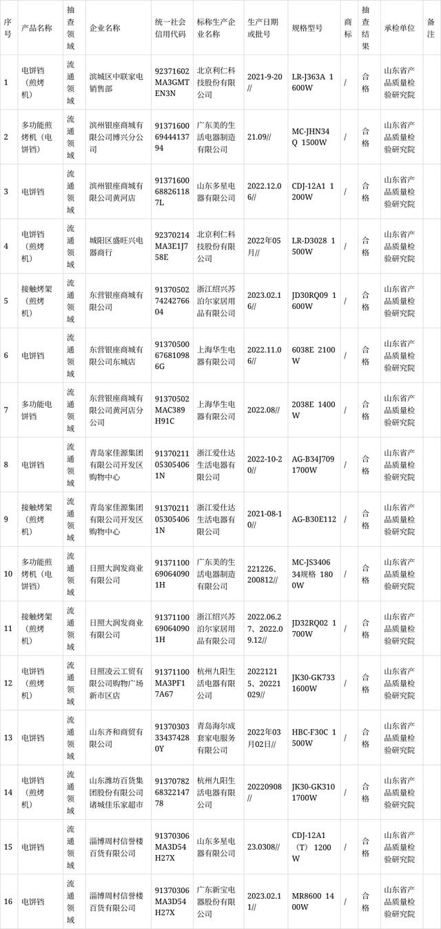 山东发布2023年电饼铛产品质量省级监督抽查结果