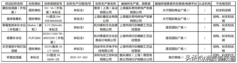 2023 年上海市加湿器产品质量监督抽查不合格产品
