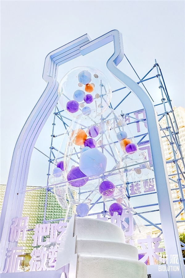本次研派Biolution“排塑体验站”城市线下快闪活动,用充满微塑料的8米高人形充气气膜、巨型咖啡杯与外卖盒,直观展示出塑料制品对人类身体的危害,呼吁大众开启无塑健康生活。