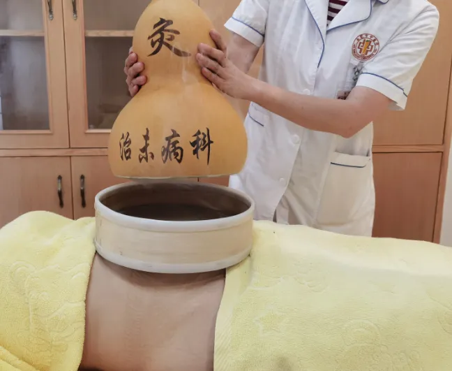 固元葫芦灸中,葫芦本身也是中药材。葫芦味甘,性光滑无毒,其蔓、须、叶、花、子、壳均可当药,在施灸时葫芦的功效也随之让患者消化吸收,更加具有互相融洽相辅相成的功效。