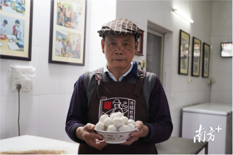 冯耀昆作为冼沙鱼丸的第三代传承人,已从事这门手艺四十多年。他的儿媳李玉翠,毕业于中山大学工商管理专业,不仅参与到家族鱼丸事业中,还负责对外销售和营销工作,通过改良升级,打造了自有品牌——冯耀昆鱼丸。