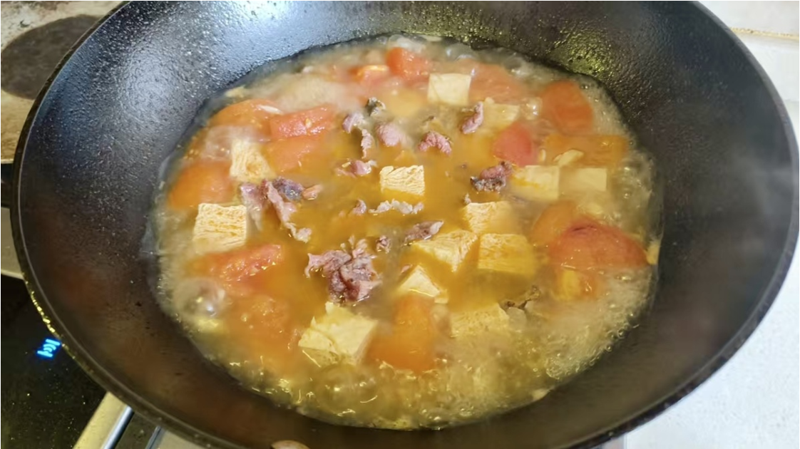 食材预处理阶段:采用85℃热水烫剥番茄表皮,破坏果胶酶活性保留92%番茄红素;牛肉逆纹切割至2mm薄片,经料酒-酱油复合酶解液腌制,蛋白转化率提升37%;豆腐经pH6.2清水浸泡,有效去除96%豆腥味。