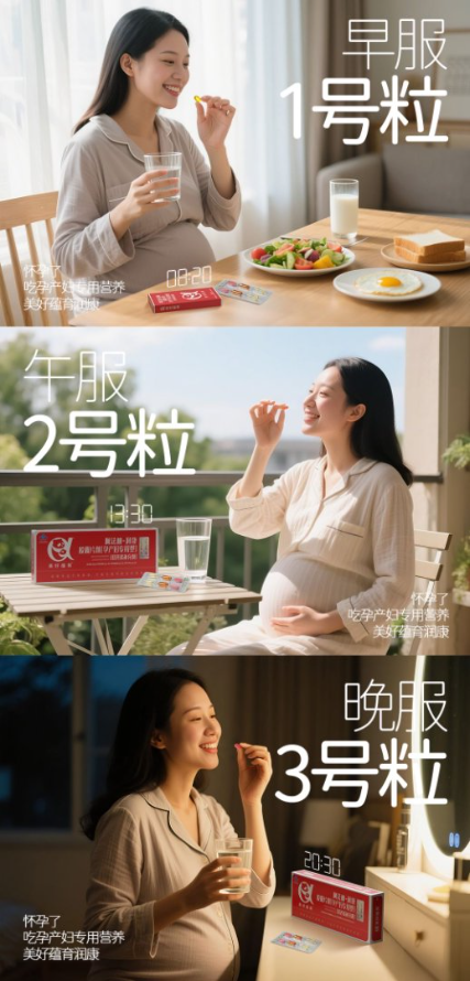 美好蕴育润康,作为官方认证的孕产妇专用营养补充剂——简单说,就是专门给怀孕妈妈和宝宝定制的营养方案。它的特别之处藏在每天早中晚三粒小胶囊里:早上吃的1号胶囊,主要补α-亚麻酸,这是宝宝大脑和视力发育的关键原料;中午吃的2号胶囊,含卵磷脂、α-亚麻酸和多种维生素,帮妈妈缓解疲劳、让宝宝眼睛更明亮;晚上吃的3号片剂,有复合维生素和矿物质,专门对付孕期常见的抽筋、贫血,还能帮妈妈睡个好觉。