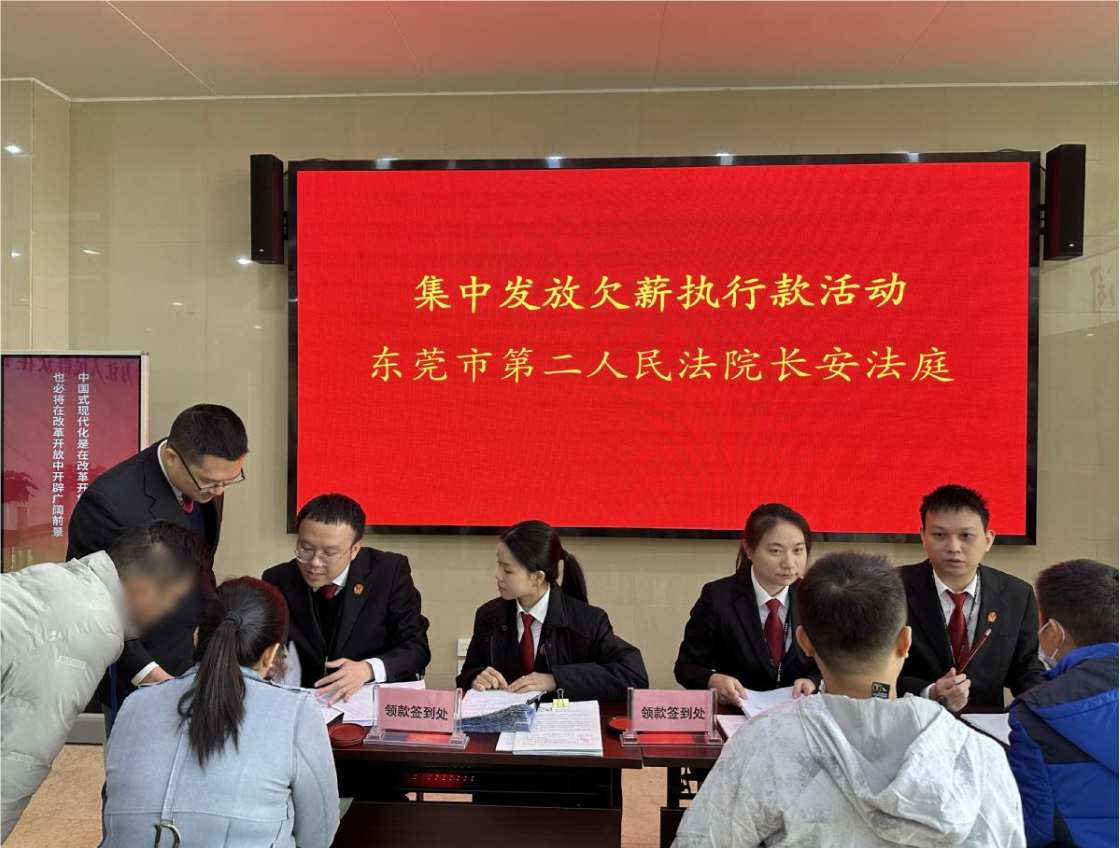2024年12月14日上午,东莞市第二人民法院长安法庭开展了一场名为“冬日攻坚”的集中发放欠薪执行款活动。此次活动旨在解决东莞市某模具制品有限公司倒闭后拖欠的廖某等41名工人的工资问题,涉及金额共计101万余元。在法庭的积极努力下,所有工人在年前顺利领到了被拖欠的工资。