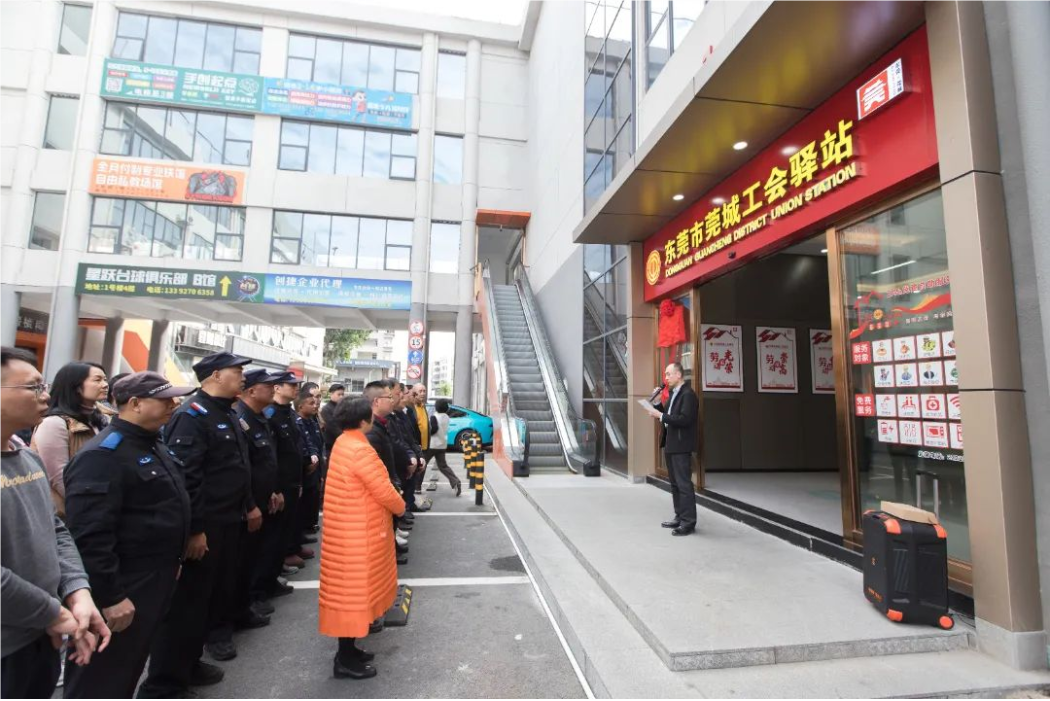 12月18日,莞城街道总工会驿站(莞城天宝站)正式揭牌启用,成为该地区最新升级打造的24小时智能化驿站之一。这一驿站将为广大户外劳动者提供全方位的免费自助服务,显著提升职工的获得感、幸福感、安全感。东莞市总工会党组成员、副主席何志雄,莞城街道总工会、罗沙社区、企业有关人员以及户外劳动者代表共同出席了揭牌仪式。