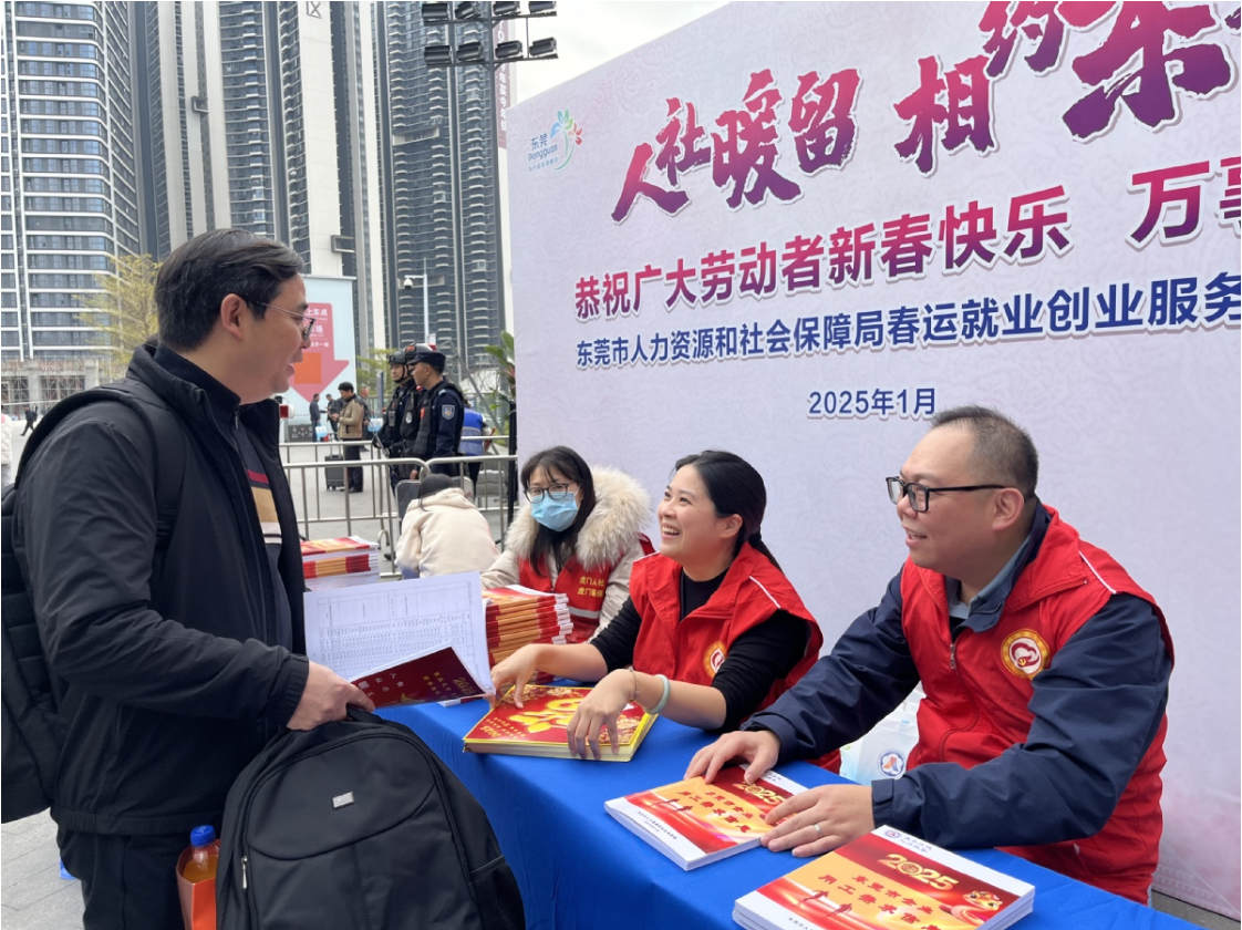 2025年1月14日,东莞市正式拉开了春运的大幕,预计今年春运期间旅客发送量将达到2073.77万人次,较去年同期增长约0.12%。春运首日,东莞市人社局同步启动了“人社暖留相约东莞”春运就业创业服务宣传活动,旨在为出行旅客提供优质的就业服务,并倡导文明出行和平安过节。