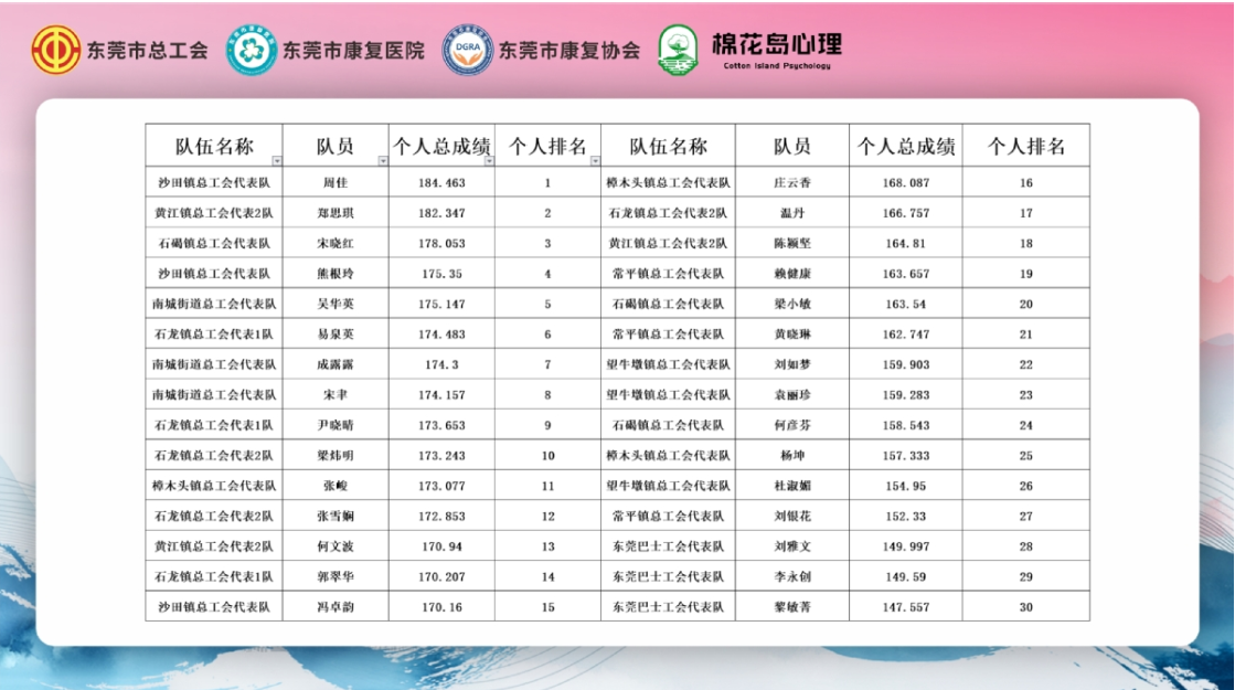 2025年东莞市职工心理健康服务职业技能竞赛于11月4日至5日在东莞市康复实验学校隆重举行,标志着本市在推进职工心理健康服务专业化建设方面迈出坚实一步。此次竞赛由东莞市总工会主办,东莞市康复医院承办,联合东莞市康复协会协办,并获得棉花岛心理门诊的全程专业支持,吸引了来自全市32个镇街(园区)的25支代表队踊跃参与,充分彰显了基层工会组织对职工心理关怀的高度重视与积极回应。竞赛以“赋能职工关怀,共筑心灵港湾”为核心宗旨,聚焦职工心理服务的实际应用场景,通过理论笔试、案例分析、心理咨询技能展示等多维度环节,全面检验和提升一线从业人员的专业素养与实战能力,旨在为构建高质量、可持续的职工心理服务体系夯实人才基础。