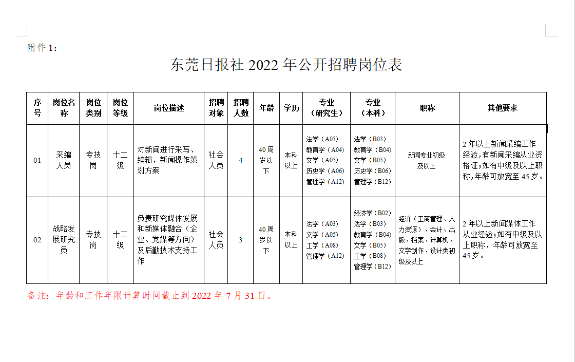 东莞日报社为归口市委宣传部管理的正处级事业单位,经费自理。根据《事业单位人事管理条例》《广东省事业单位公开招聘人员办法》有关规定,结合东莞日报社发展需要,2022年拟计划对外公开招聘7名工作人员,现将有关事项公告如下。