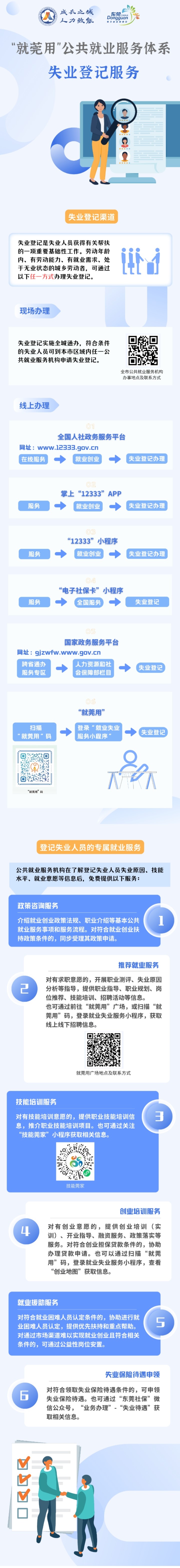 失业登记的重要性不言而喻,通过办理失业登记,失业人员可享受人社部门免费提供的政策咨询、求职培训、创业指引、就业援助、失业保险金申领等服务。那么,在东莞应该如何便捷地办理失业登记服务呢?看下图,攻略都在这。