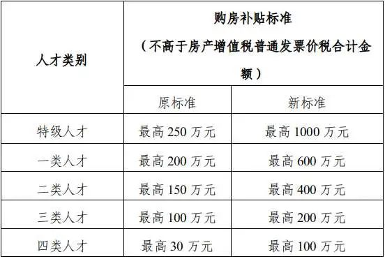 根据通知,各类人才奖补力度不小,以特色人才为例,特级人才的购房补贴标准从原来的最高250万元提升至最高1000万元;特级人才生活补助分5年逐年递增发放,从第一年5万元开始,一直递增到第五年9万元。
