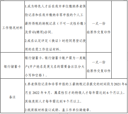 获认定、评定为特色人才后,连续在我市工作满12个月,至申请生活补助时仍在我市工作。工作情况以在我市单位缴纳养老保险和个人工薪所得税情况为准。