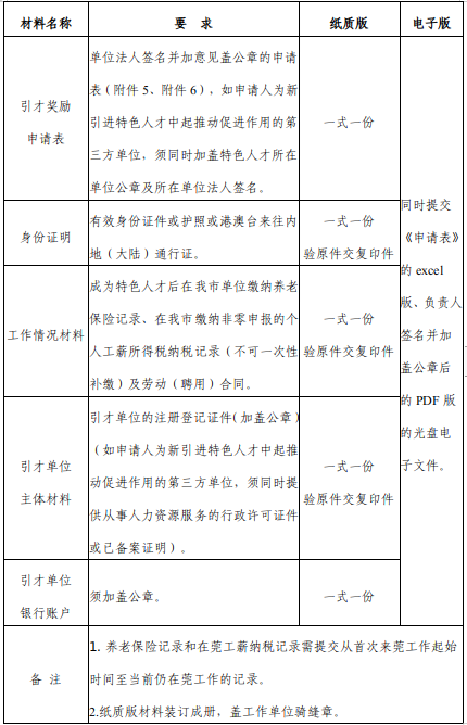 申请引才奖励需提交如下资料: