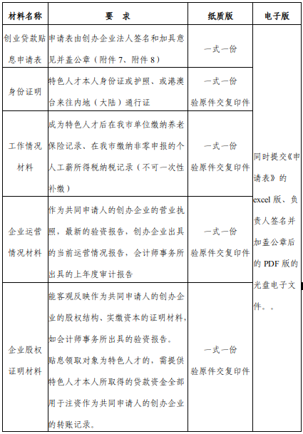 申请特色人才创业贷款贴息需提交如下资料: