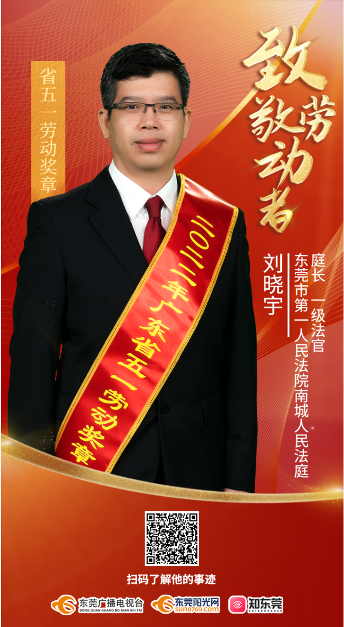 法律是维护社会公平正义的最后一道防线。东莞市第一人民法院南城法庭庭长刘晓宇,多年来他始终保持谦逊平和的心态,履职尽责、敢于担当,牢牢扎根在基层法庭的审判一线,用法律知识和真诚态度公正判决、成功调解,展现了当代优秀法官的风采。今年,他获评广东省五一劳动奖章。