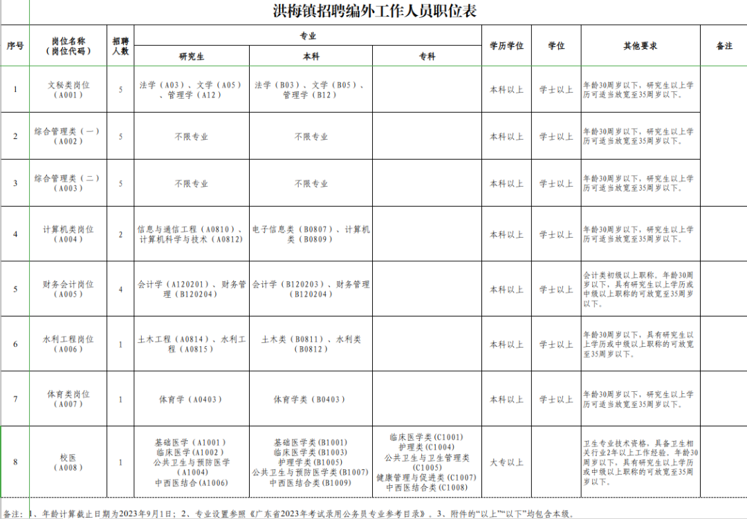 具体岗位、招聘人数、资格条件等详见下表《2023年虎门公安分局警务辅助人员招聘计划一览表》。