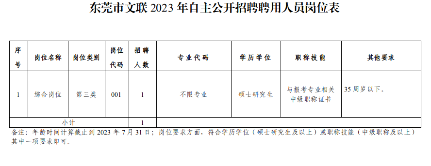 本次招聘综合岗位1人,具体岗位情况和要求见岗位表。