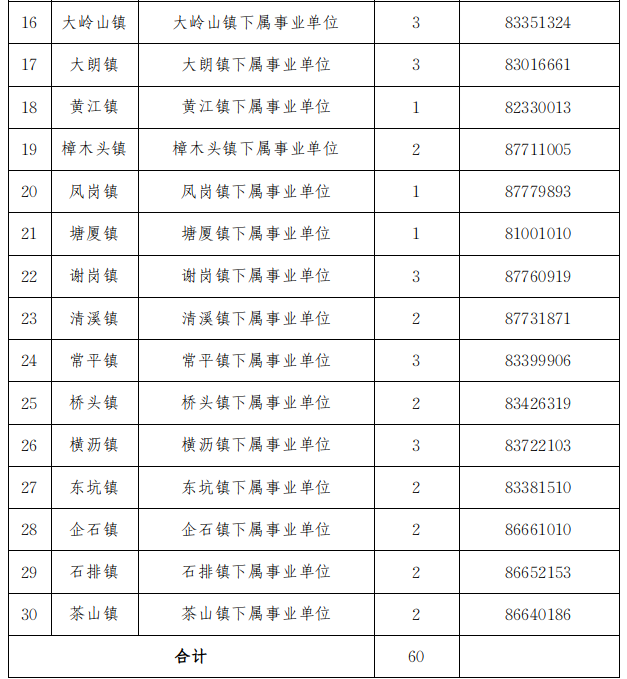以镇(街道)为单位,面向本地在职优秀村(社区)党组织书记招聘镇(街道)公益一类事业单位工作人员。本次招聘人数60名。