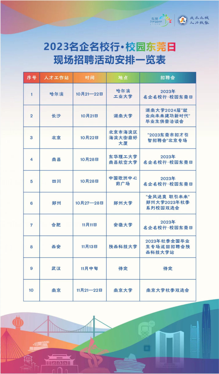 “双节”长假一过,2023年的第四季度也正式开始,跨入了火热的秋招季,求贤若渴的东莞又迈开了揽才的脚步。
