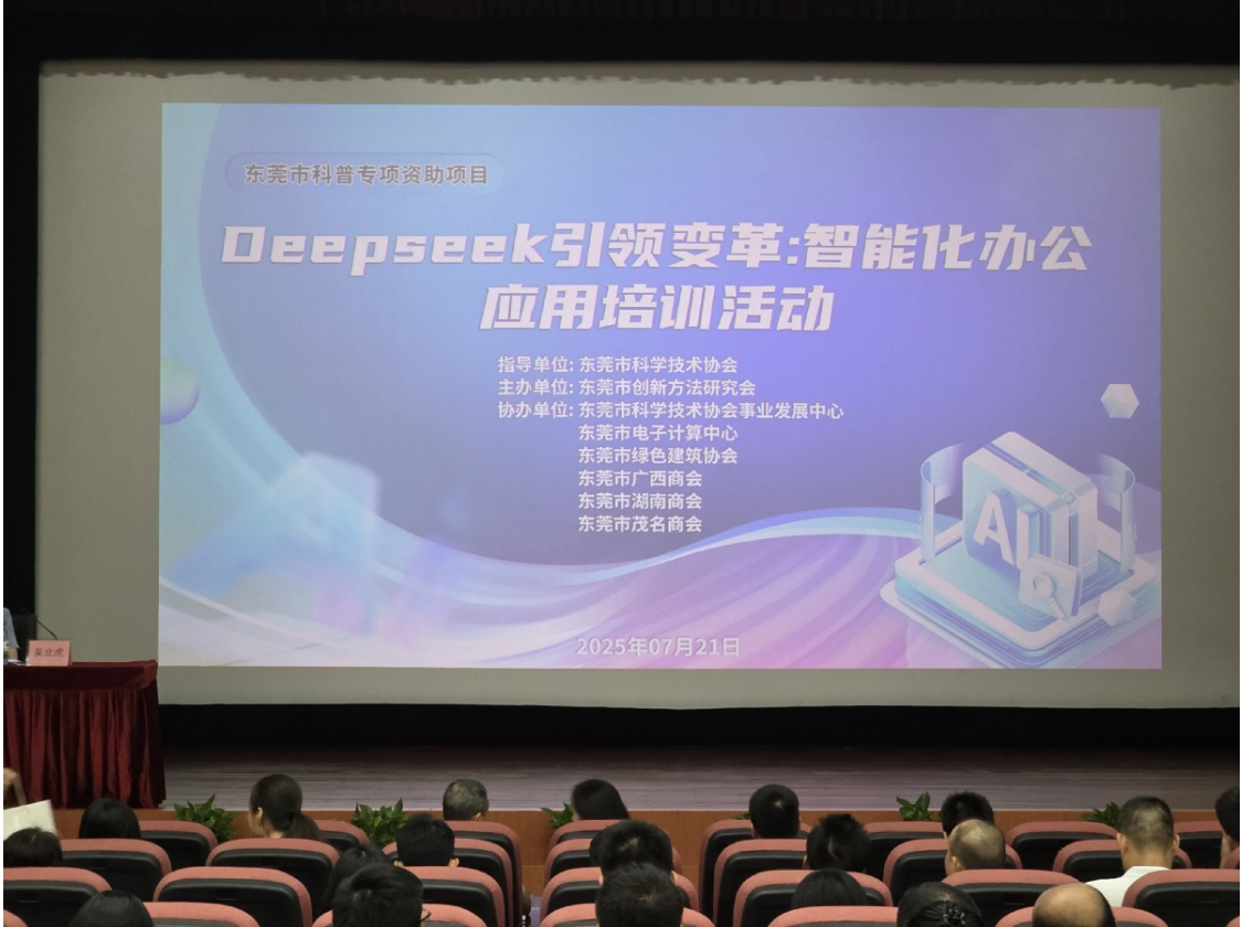 7月21日,东莞科学馆报告厅的电子屏流淌着代码洪流,近200名企业代表紧盯操作界面——这里正举行"创新方法推广应用"专题培训。作为市科普资助专项重点活动,在东莞市科协指导下,创新方法研究会联合电子计算中心、绿色建筑协会及三大商会搭建起产学研用对接平台。主席台上,人工智能专家吴北虎的演示引发阵阵惊叹:"用深度求索系统生成营销方案,耗时从三小时压缩至三分钟!"这位清华出身的《通识AI》教材作者,以国家人工智能训练师高级考评员的实战经验断言:"掌握智能工具,就是把重复劳动转化为创造力的起点。"