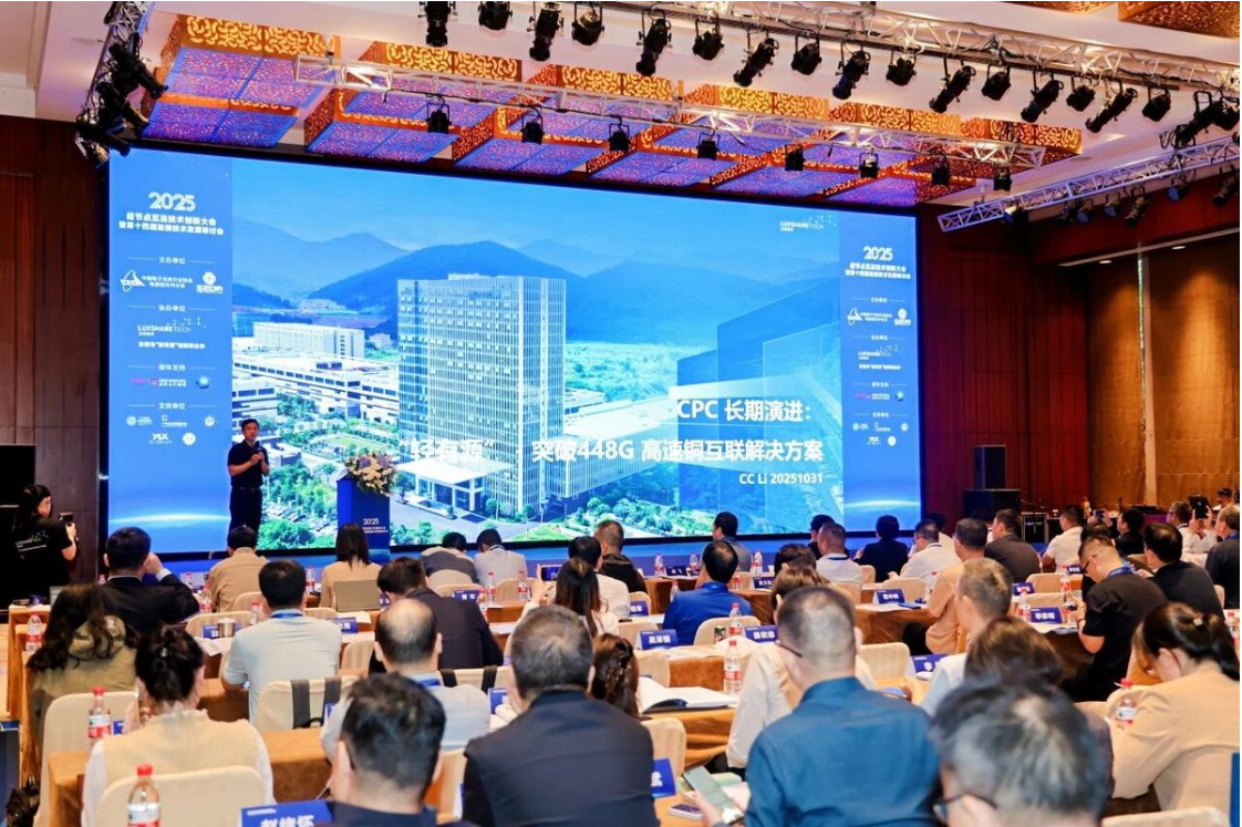 会上,中国电子元件行业协会常务副理事长古群系统梳理了我国电子元件行业的发展现状,并明确指出产业正处于由传统制造向高端化、智能化转型的关键阶段,强调基础元器件技术创新对国家战略科技力量建设的重要支撑作用。中国移动云能力中心高级专家徐小虎则围绕“开放解构超节点”实践案例,分享了在云基础设施中推进架构解耦、模块化部署与标准化接口落地的具体路径,为行业提供了可复制的技术范式。来自南京大学、英特尔、锐捷网络、盛科通信及立讯技术等单位的专家学者依次登台,从系统架构设计、处理器间高速互联、以太网扩展能力到交换芯片生态构建等多个维度,全面解析超节点互连的技术图谱。其中,东莞市“轻有源”创新联合体正式发布《CPC长期演进:突破448G高速铜互联解决方案》,该项成果标志着我国在高速铜缆互连领域实现关键技术突破,具备自主可控能力,有效应对海外技术封锁风险。与此同时,联合体还推出两款具有代表性的创新产品——全新CPC高速误码测试仪与立讯技术AI整机柜及超节点基础环境解决方案,以“铜光双驱”为核心技术路线,构建覆盖224G与448G应用场景的全栈式、立体化互连体系,为未来AI集群、云数据中心等高算力场景提供高带宽、低功耗、强扩展性的底层连接支撑。