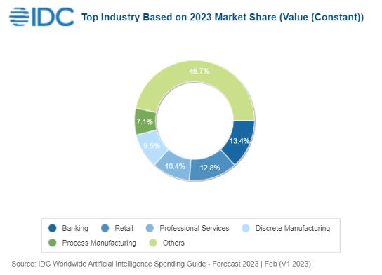 从投资领域看,银行业和零售业是预测期间投资最大的领域。第三是专业服务业,接着是离散制造业和流程制造业。今年,这五个行业加起来将占到人工智能总支出的一半以上。此外,人工智能支出增长最快的将是媒体行业,五年复合年增长率为30.2%。只有两个行业的复合年增长率低于25%。(来源:C114通信网 )