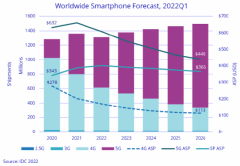 2022-06-06 09:33:45 | 智能今年智能手机出货预计同比减少3.5% IDC发布报告称,2022年全球智能手机出货量将会减少3.5%,降至13.1亿台,不...