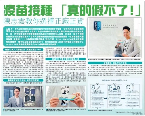 报道见报后,获各大医药及健康网站转载,大家均认可香港安苗医疗中心的专业服务,相信可为接种者提供正版正货的疫苗产品,及专业贴心的接种服务。