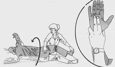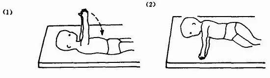 ③缓解上肢的屈肌痉挛。具体方法是:患者仰卧,双腿屈膝;双手叉