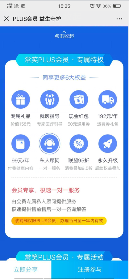 方式2:关注“常笑健康”公众号→PLUS会员→经典卡